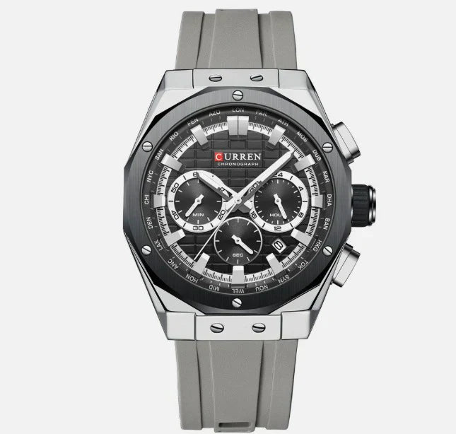 Elevate your style with the CURREN 8464 Men’s Watch, featuring a bold sports design that perfectly combines high performance with modern aesthetics. Crafted with a 45mm stainless steel case and 15mm thickness, paired with a comfortable silicone strap, it’s ideal for both daily wear and sports activities. The multi-color dial and strap add a vibrant, standout touch.